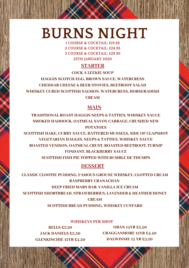 On January 25th, we invite you to join us at the Great Tides Restaurant at Muthu Westcliff Hotel in Southend to celebrate Robert Burns.