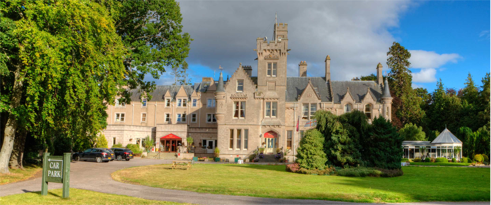 The Muthu Newton Hotel is situated on 21 acres of established parkland and gardens, bordering the Nairn Golf Course and is only 15 minutes from the Inverness airport. The hotel has 63 beautiful guestrooms with a lush view, each carefully decorated in style and tradition.